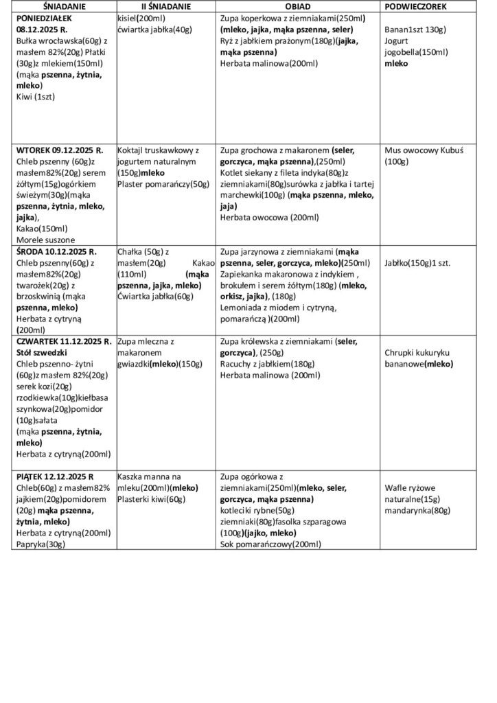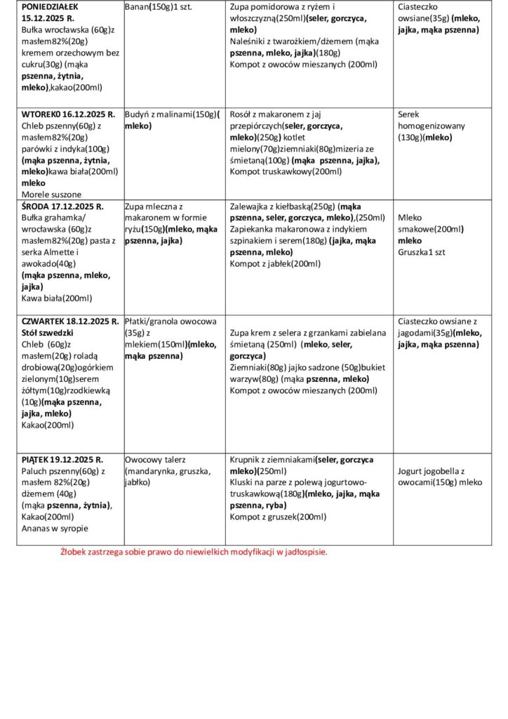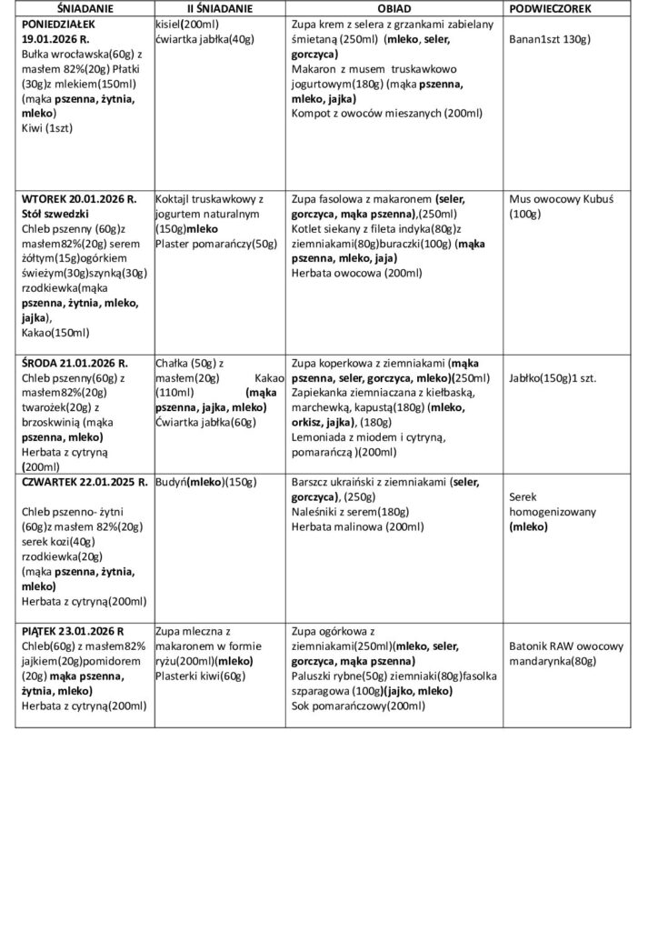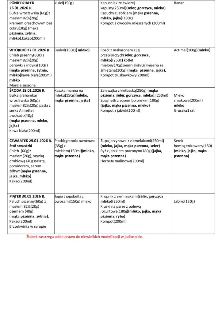 Jadłospis - Samorządowy Żłobek Włoszczowa
